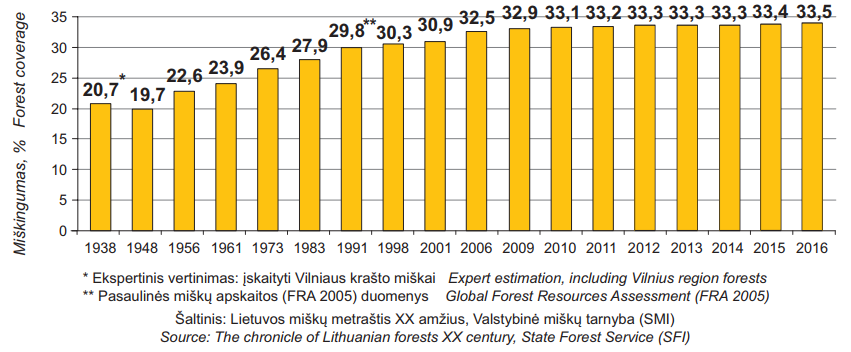 Figure 1. Forest coverage in Lithuania, 1938-2016