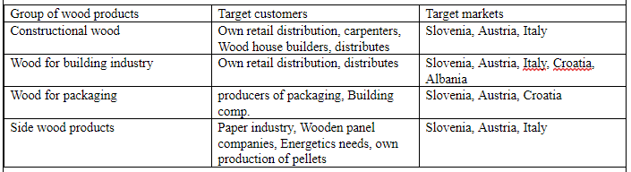 For efficient selling determination of target markets for certain groups of wood products is of key meaning. Due to long term experience of investors in this field of production following target markets was established: