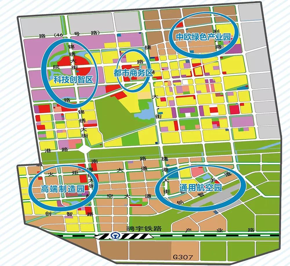 The Zone has formed the development pattern of "2 Districts and 3 Parks": 2 districts: Urban Business District, Science and Technology Creating Intelligence District; 3 parks: General Aviation Park, High-end Manufacturing Park, Green Agriculture Products Industrial Park.Urban Business District